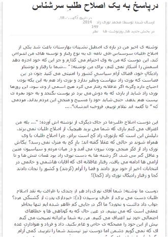 محمد نوری زاد مطلبی را در صفحه ی فیس بوک شخصی خود منتشر کرده و مدعی شده بود که یکی از اصلاح طلبان سرشناس به او نامه ای نوشته و او را به خاطر کارها ، رفتار و سخنانش مورد نقد قرار داده است.
