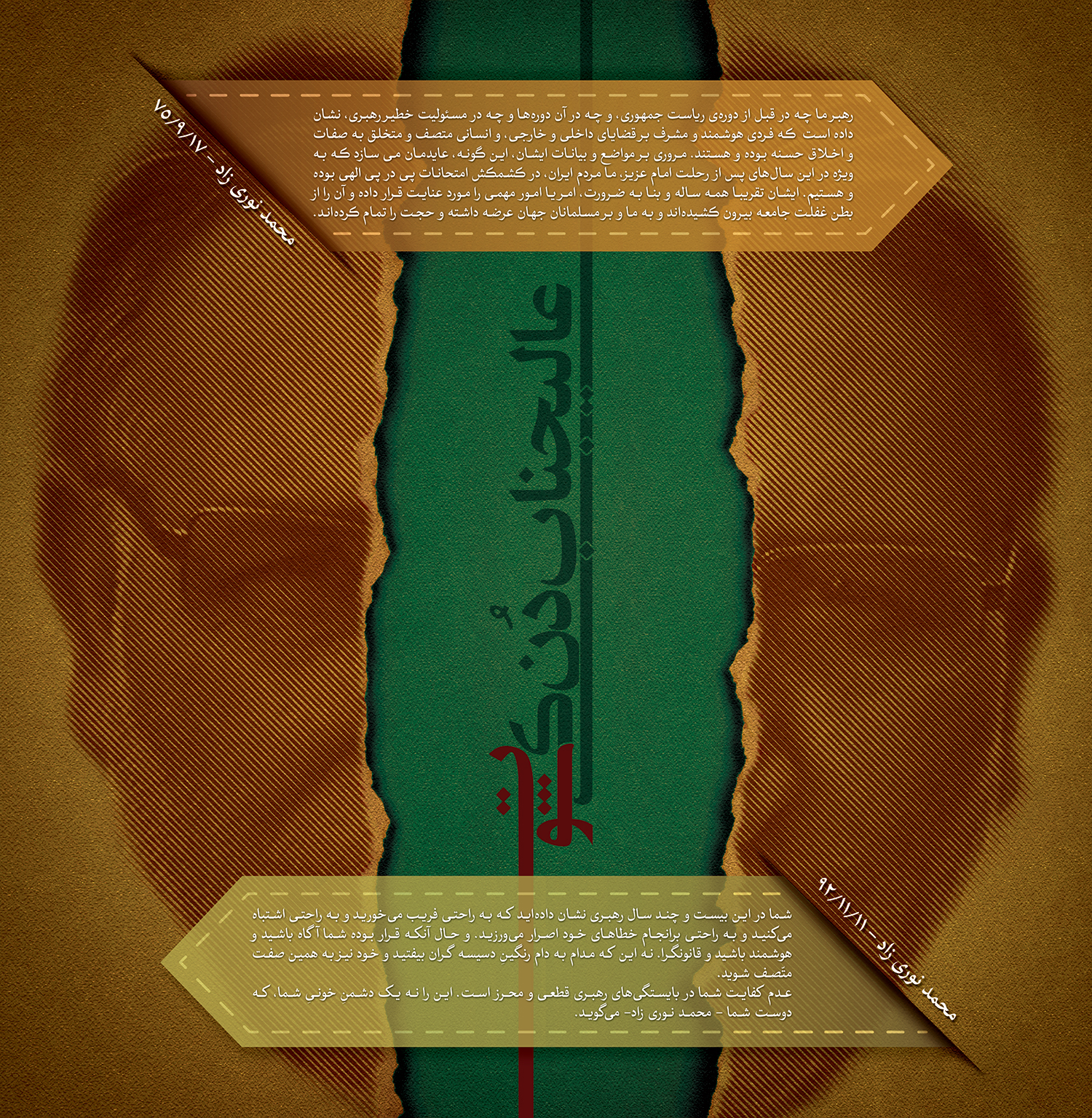 این اصلاح طلب خطاب به نوری زاد گفته است: "من به شما برادرانه نصیحت می کنم بیش از این خود را مضحکه ی خاص و عام نکنید. داد و فریاد و هواداریِ عده ای که نمی گویم دشمن اما دوست نیز نیستند شما را نفریبد. "